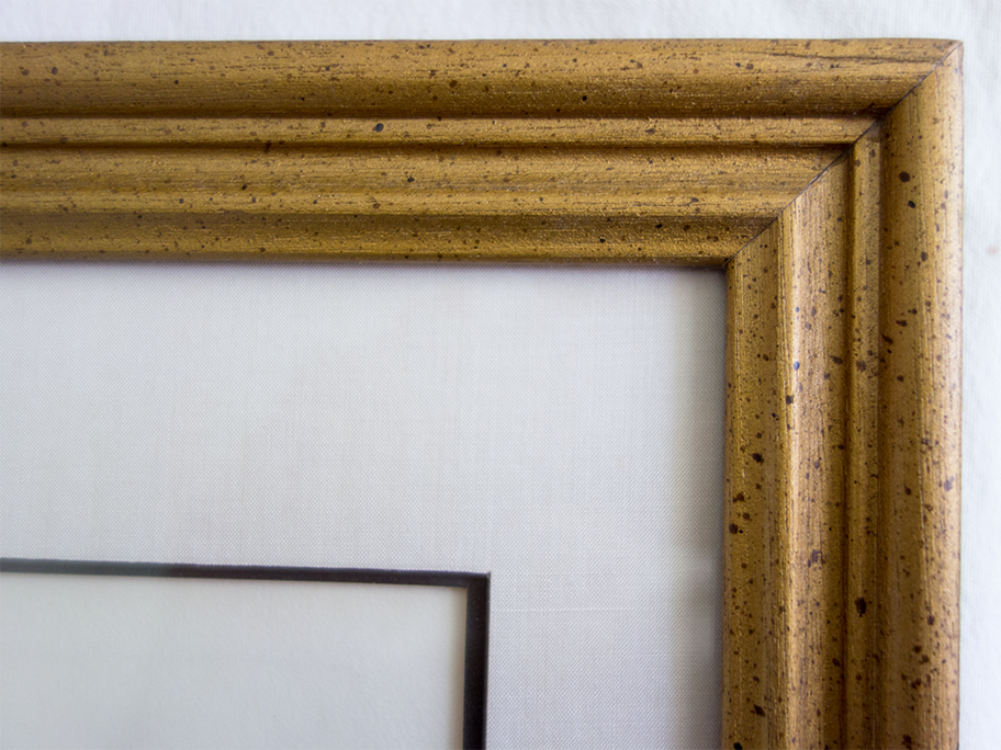 An authentic etching always has the noticeable impression of the plate (as this art work does), as a result of being put through a high-pressure printing press together with a sheet of paper (often moistened to soften it). The paper picks up the ink from the etched lines, making a print. This work was created in the 1960’s.